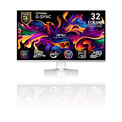 The MPG 321URX QD-OLED gaming monitor features a next-generation 3840x2160 (UHD) QD-OLED panel, a 240Hz refresh rate and a fast 0.03ms (GtG) response time. VESA certification for ClearMR 13000 and DisplayHDR True Black 400 ensures exceptionally vivid images and reduces motion blur. OLED Care 2.0 reduces the risk of OLED burn-in. For console gamers, the MPG 321URX QD-OLED offers HDMI 2.1 ports with 48Gbps bandwidth, 120Hz support, VRR and ALLM.